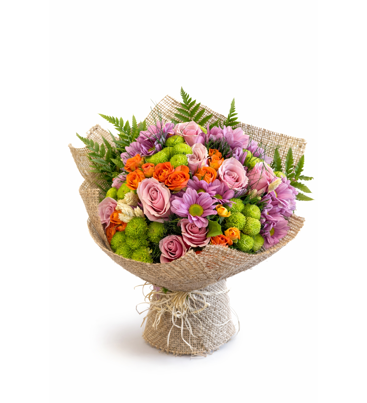 Doğum günü, teşekkür, geçmiş olsun veya “içimden geldi” hediyesi olarak tercih edilebilecek zamansız bir aranjmandır. Doğal jüt ambalajı ve özenli bağlama detayıyla rustik ve modern tarzı bir arada sunar.