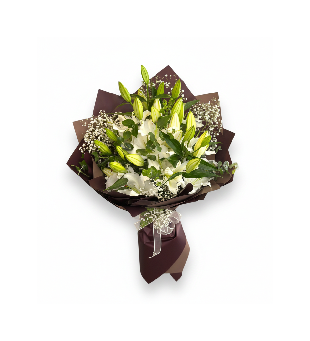 Sevdiklerinizi mutlu etmek için bu etkileyici beyaz lilyum buketini hemen sipariş edin! Daha fazla bilgi almak veya sipariş vermek için bizimle iletişime geçin; sizleri bekliyoruz!