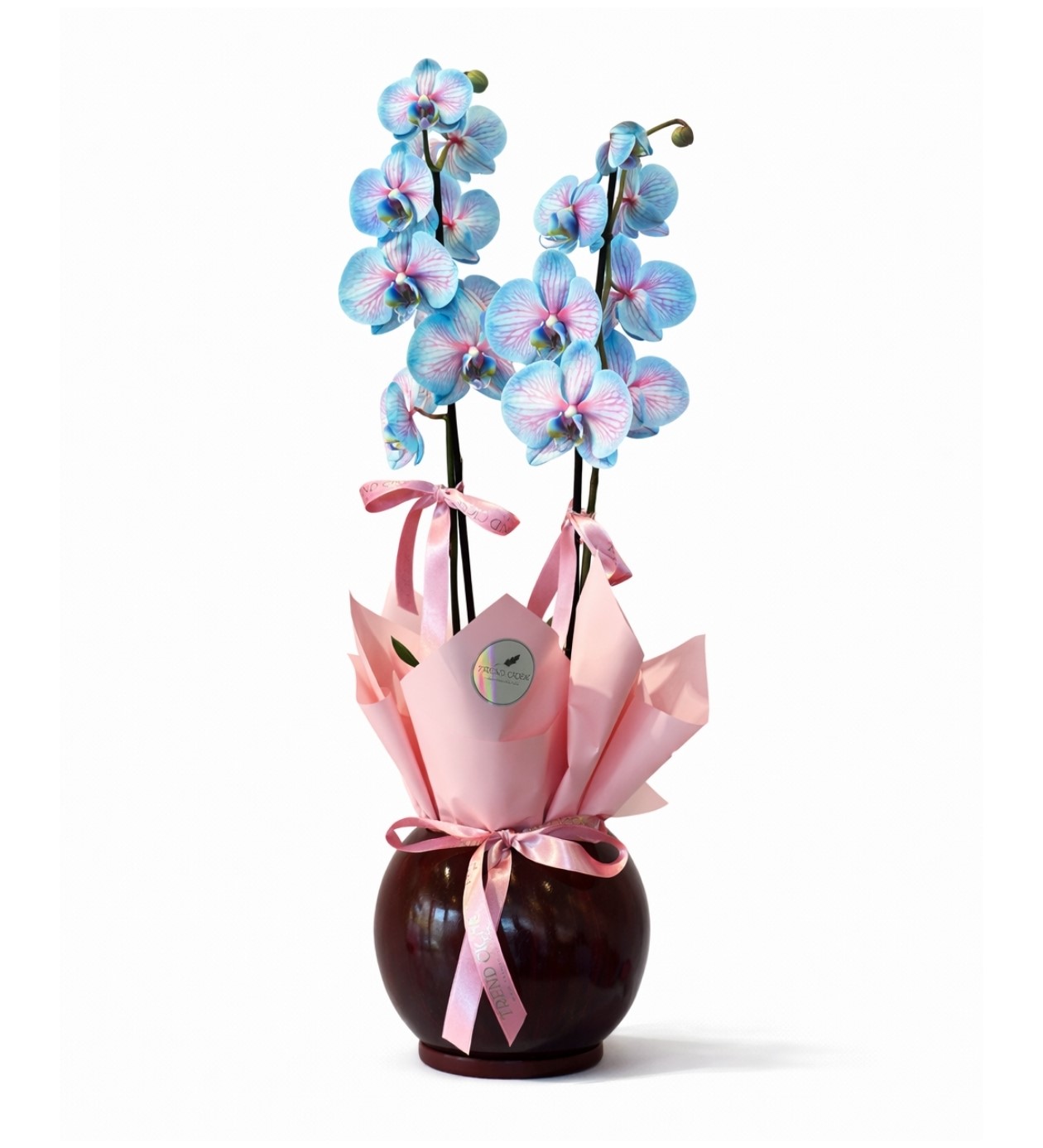 Doğum günü, tebrik, yeni iş kutlaması veya özel günlerde sevdiklerinize farklı ve etkileyici bir sürpriz yapmak için ideal bir tercihtir. Blue Mirage, orkidenin zarif yapısını modern renk dokunuşlarıyla birleştirerek bulunduğu ortama sofistike ve dikkat çekici bir atmosfer kazandırır.