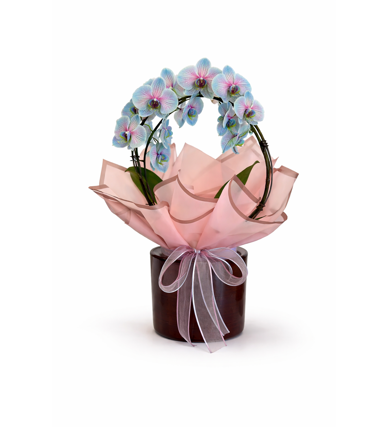 Blue Mist Circle, göz alıcı mavi kırçıllı Phalaenopsis çiçekleriyle tasarlanmış özel çember form bir orkidedir. Zarif geçişli mavi tonları ve desenli yaprak dokusu sayesinde klasik orkide görünümüne modern ve sofistike bir karakter kazandırır.