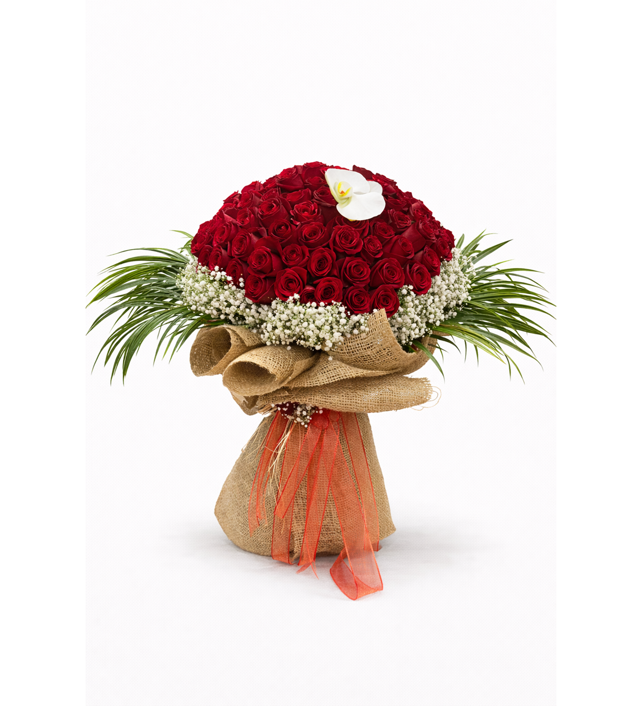 Crimson Crown – 101 Kırmızı Gül Buketi | Premium Collection, ithal kırmızı güllerden hazırlanan, son derece gösterişli ve etkileyici bir premium tasarımdır. Dolgun yapısı ve simetrik formu ile aşkı, tutkuyu ve ihtişamı en güçlü şekilde ifade eder.