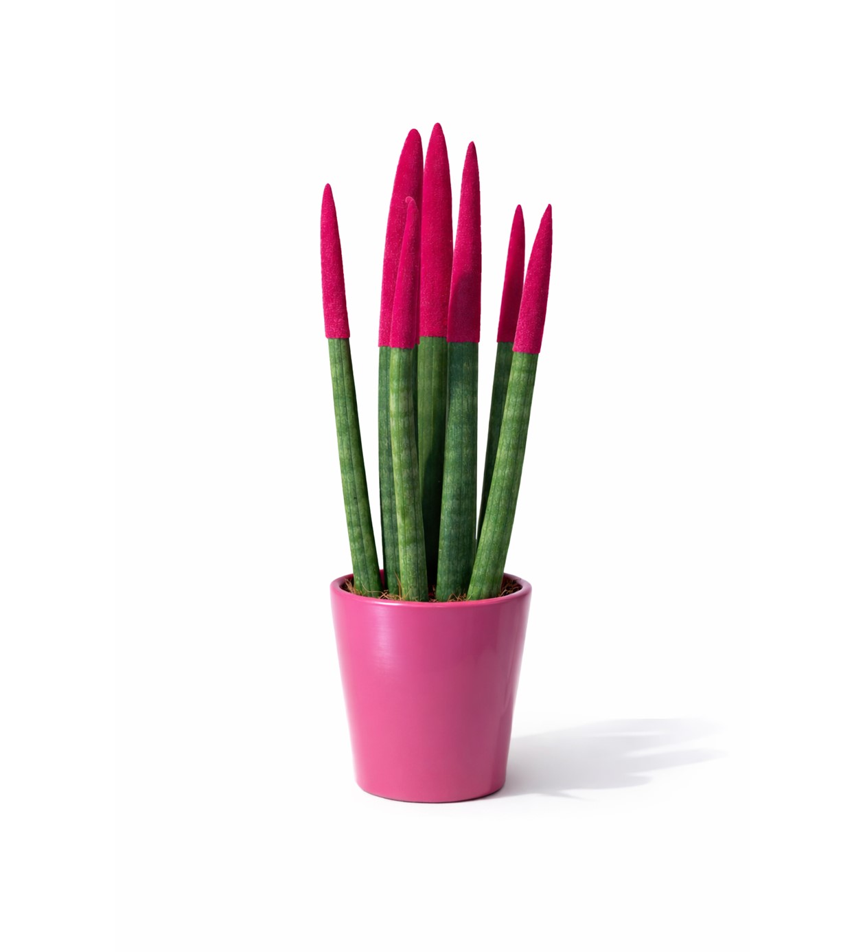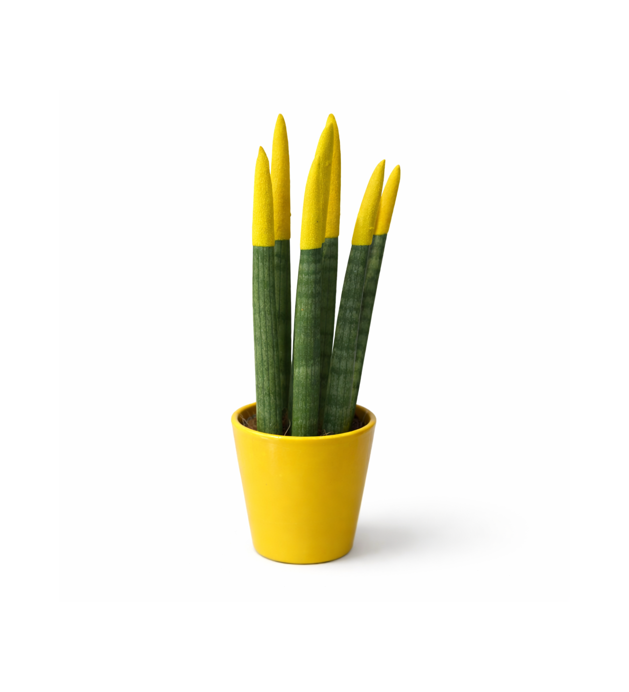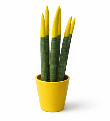 Modern ve güçlü duruşuyla öne çıkan bu özel sansevieria, canlı uç detaylarıyla klasik bitki görünümünün dışına çıkar.
