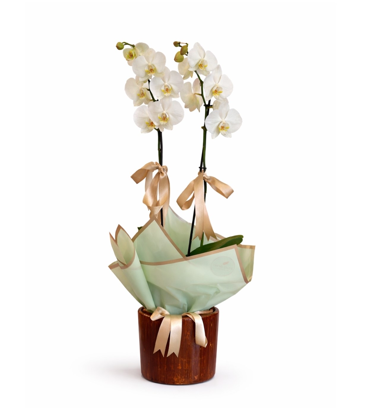 Double Grace – 2 Dal Beyaz Phalaenopsis Orkide | Günlük Seri