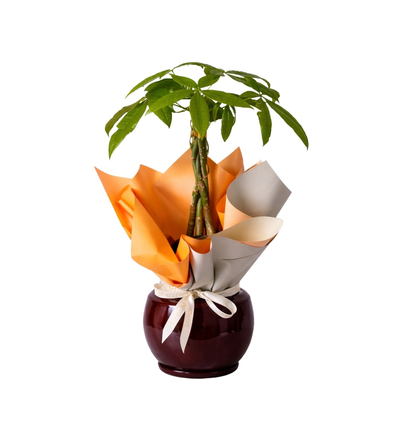 Minimal ve modern ambalaj ile sunulan tasarım, hem ev hem ofis dekorasyonunda estetik bir tamamlayıcı olarak öne çıkar. Feng Shui inanışına göre şans, bereket ve pozitif enerji getirdiğine inanılan Pachira Aquatica, uzun ömürlü ve bakımı kolay yapısıyla da popüler bir iç mekân bitkisidir.