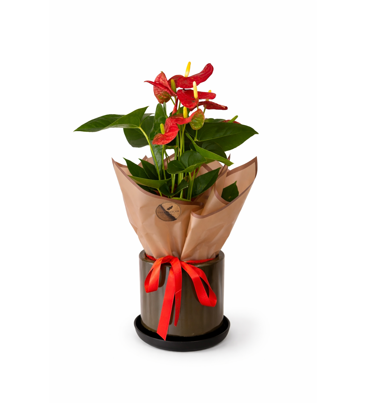 Zarafeti ve kalıcılığı bir arada sunan kırmızı antoryum, parlak yaprakları ve göz alıcı çiçekleriyle bulunduğu ortama anında şıklık katar. Özenle seçilmiş canlı bitkilerle hazırlanan bu özel aranjman, modern saksısı ve şık ambalajı ile hediye etmeye hazır şekilde sunulur. Kırmızının güçlü ve romantik etkisi, sevginizi kelimelere ihtiyaç duymadan anlatır.