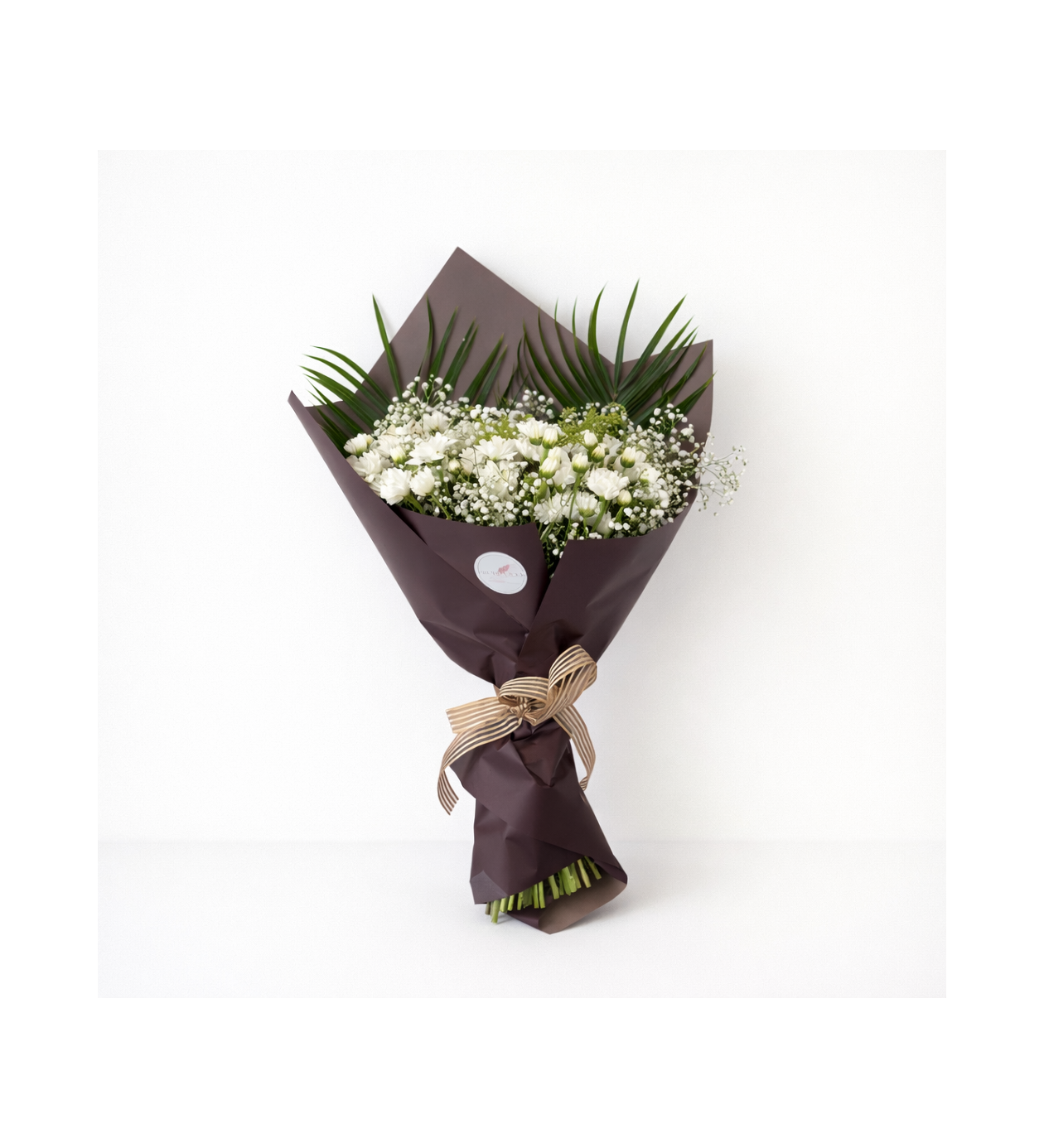 Kahve tonlarında premium ambalaj ve zarif kurdele detayı ile tasarlanan bu buket; minimal, modern ve zamansız bir görünüm sunar. Beyazın huzur veren estetiği bulunduğu ortama ferahlık ve zarafet katar.
