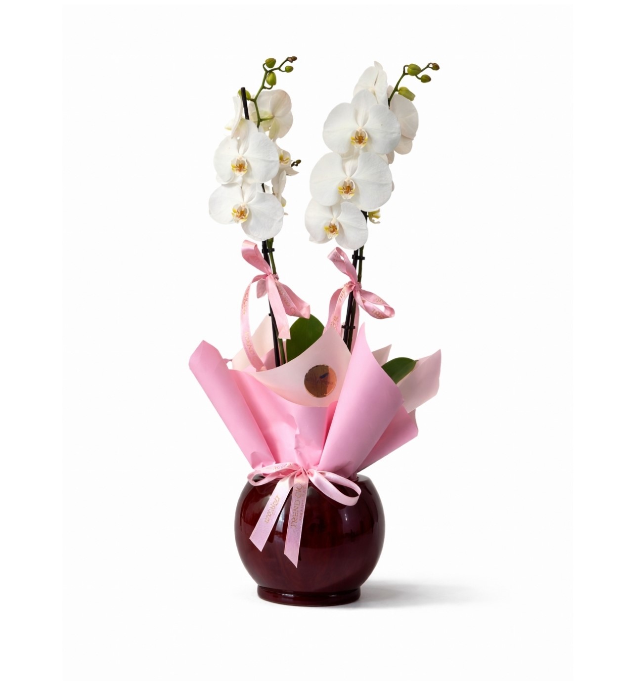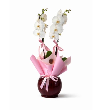 Pure Elegance, sadeliğin ve zarafetin en sofistike halini yansıtan çift dal beyaz phalaenopsis orkide aranjmanıdır. Saf beyaz orkide çiçekleri, zarif ve dengeli formuyla bulunduğu ortama ferah ve prestijli bir atmosfer kazandırır.