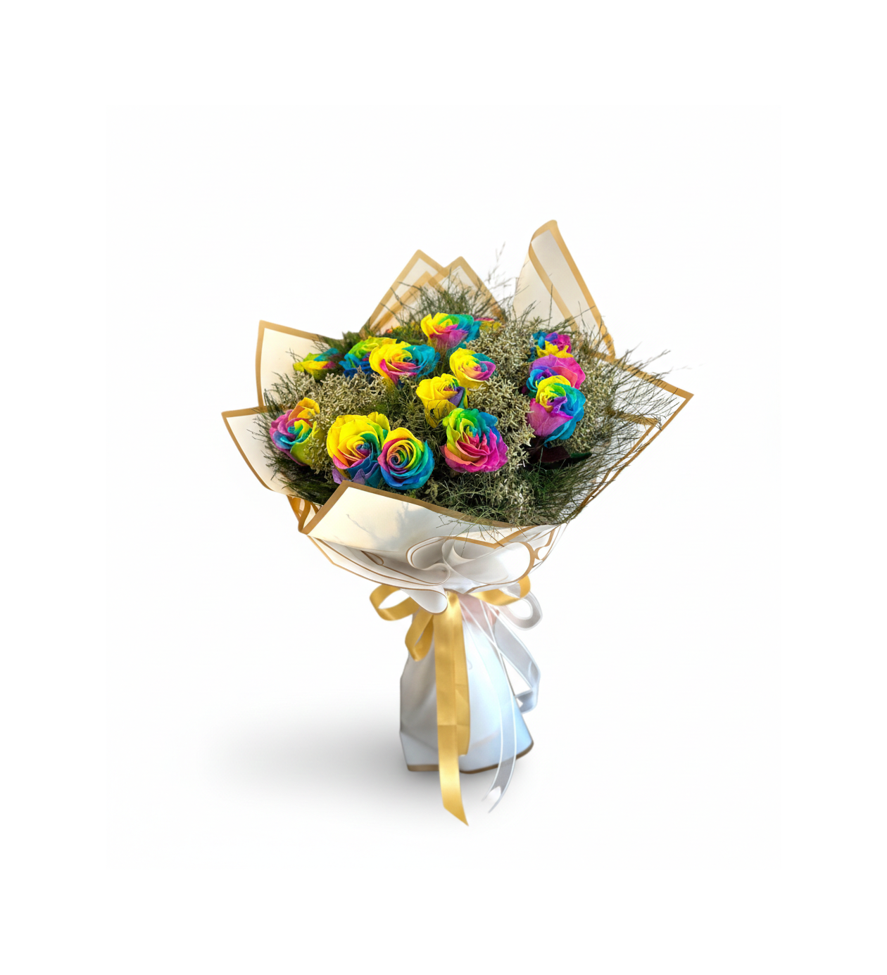 Sevdiklerinizi mutlu etmek için bu etkileyici rainbow ekvator gül buketini hemen sipariş edin! Daha fazla bilgi almak veya sipariş vermek için bizimle iletişime geçin; sizleri bekliyoruz!