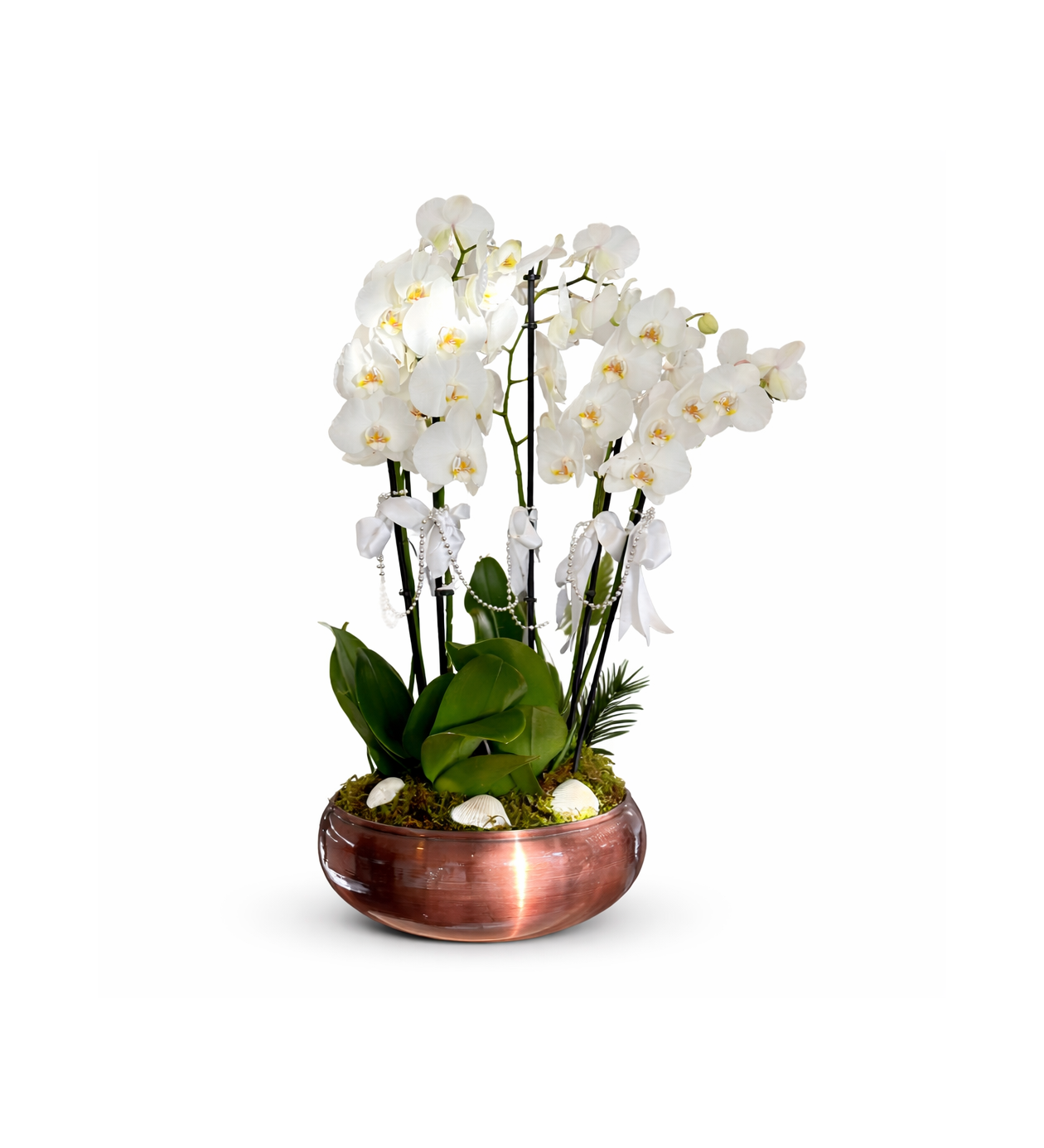 Sapphire Orchids - 10 Dal Beyaz Orkide Aranjmanı I Premium Seri 10 dal beyaz orkidenin bir araya gelmesiyle oluşturulmuş, son derece gösterişli ve premium bir aranjmandır. Saf beyaz tonları ve dolgun formu sayesinde bulunduğu ortama zarafet ve prestij katar.