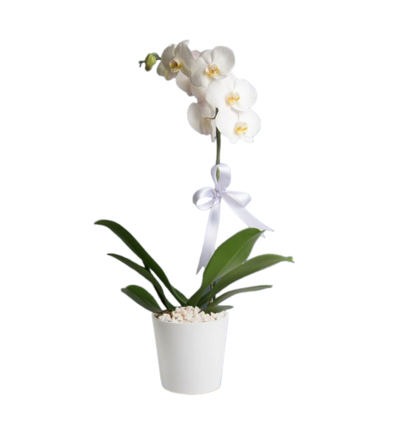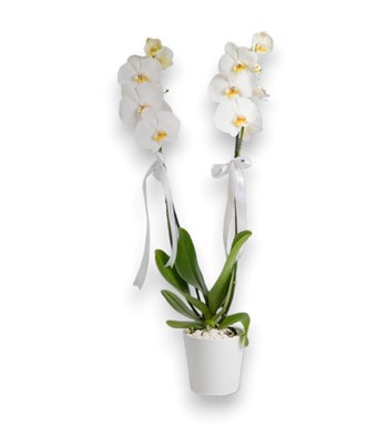 Beyaz phalaenopsis orkide; kendine güven ve asaleti simgeleyen, kendine güvenen ama mağrur görünüşüyle büyüsüne kapıldığımız ve zamansız bir çiçektir. Sevdiklerinize onlar kadar büyüleyici bir çiçek hediye ederek sürprizinizin cazibesine kapılmasını ve her baktığında gülümsemesini sağlayabilirsiniz!